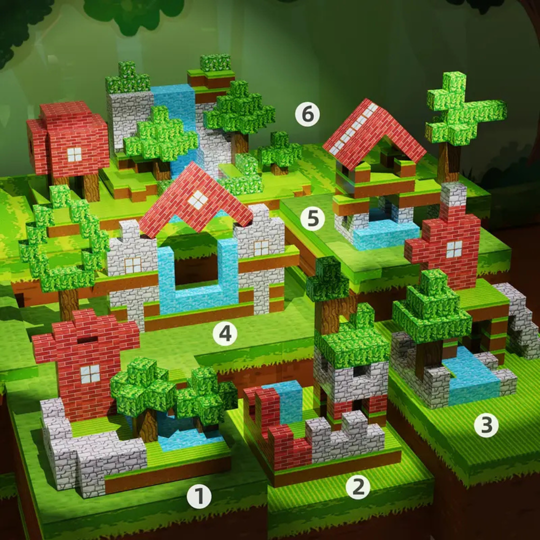 • Unlike other brands that use paper-wrapped designs, sharp edges, or copied content from major creators, our designs are directly printed onto the blocks for durability — and created entirely by us. We also use stronger magnets to ensure structures stay together and last longer. In addition, our blocks are sized to minimize any choking hazards.